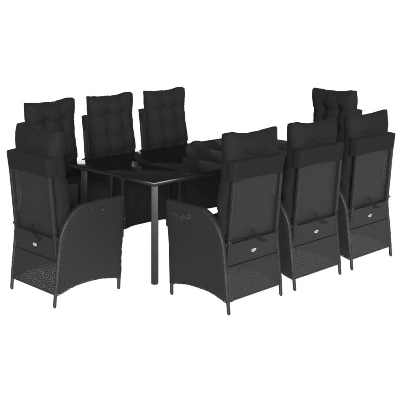 Градински трапезен комплект възглавници 9 части черен полиратан