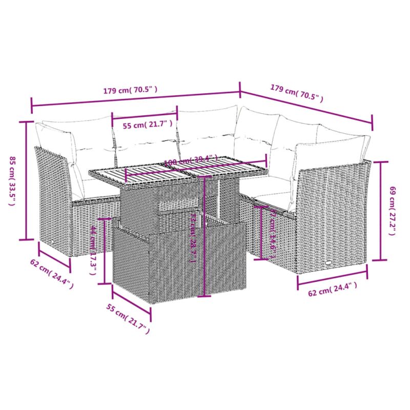 Градински комплект диван с възглавници 5 части бежов полиратан