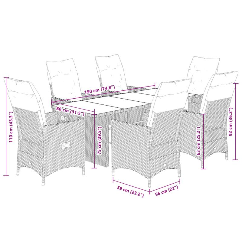 Градински трапезен комплект 7 части възглавници черен полиратан