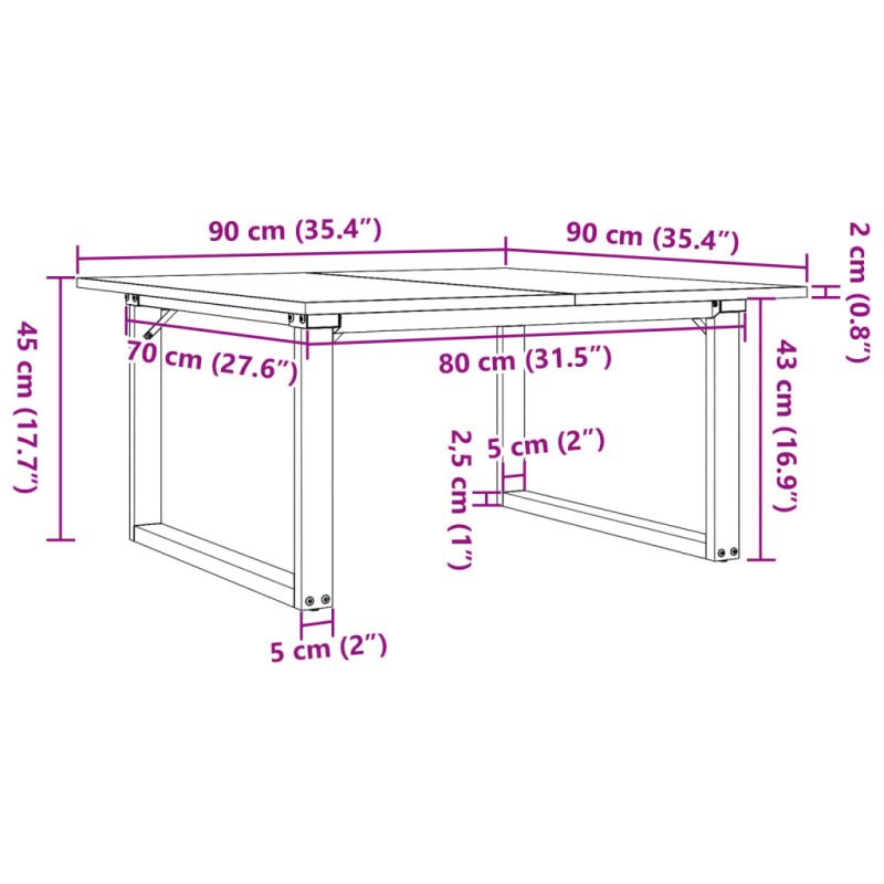 Кафе маса О-образна рамка 90x90x45 см бор масив и стомана