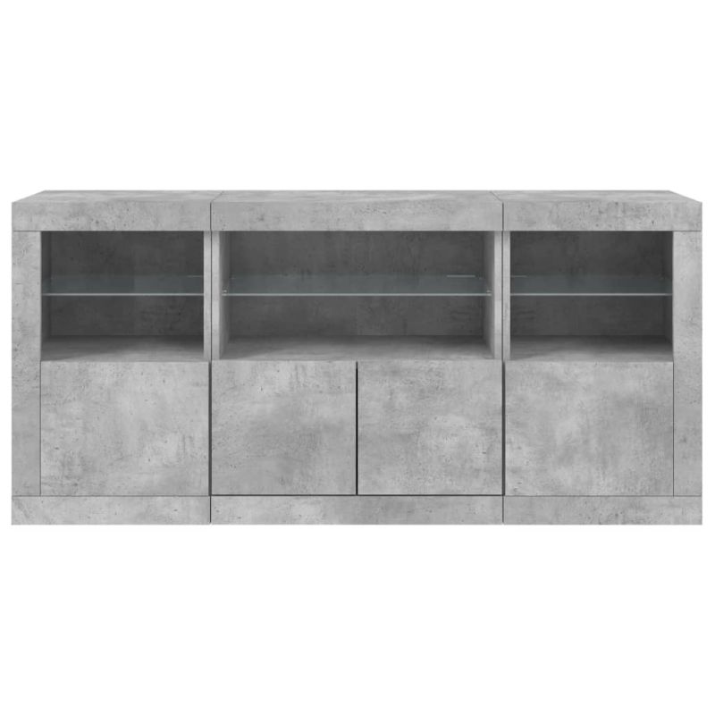 Сайдборд с LED светлини, бетонно сив, 142,5x37x67 см