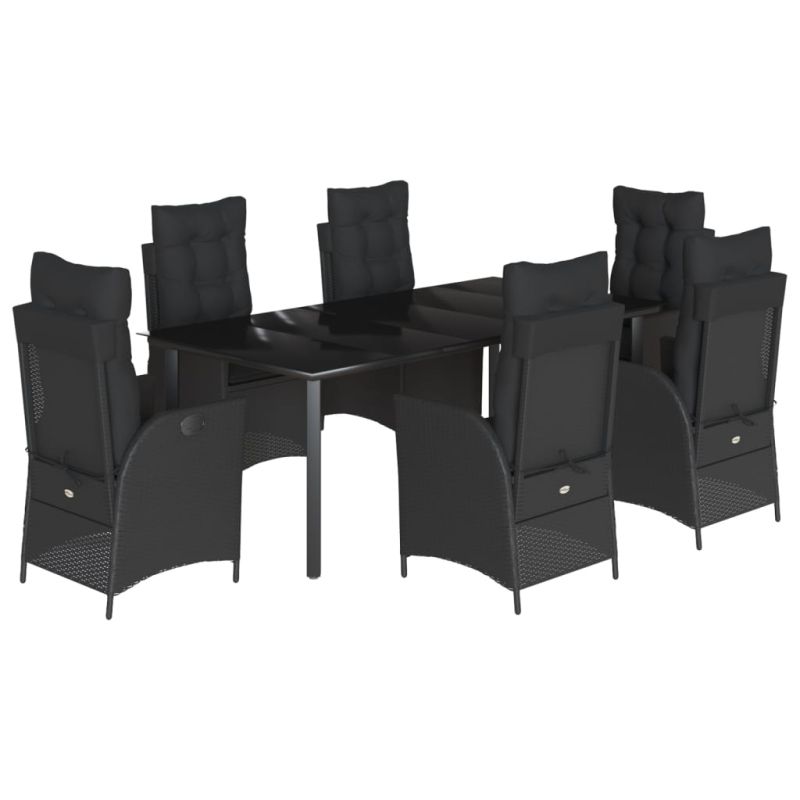 Градински трапезен комплект 7 части възглавници черен полиратан