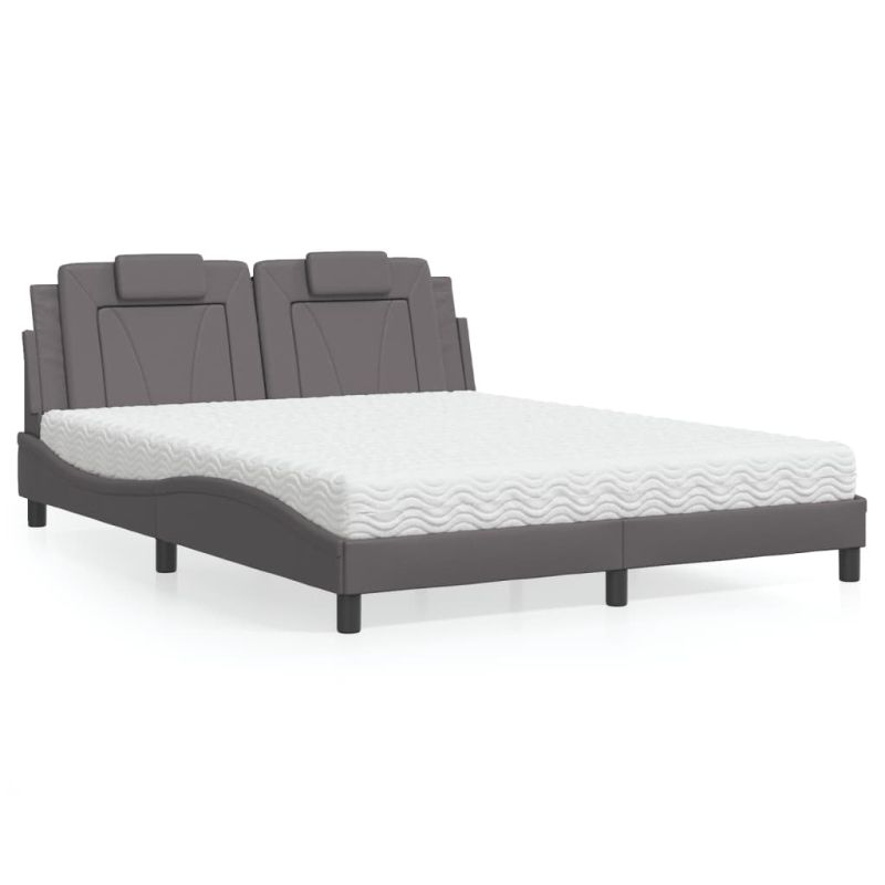 Легло Viana без матрак, сиво, 160x200 см, изкуствена кожа