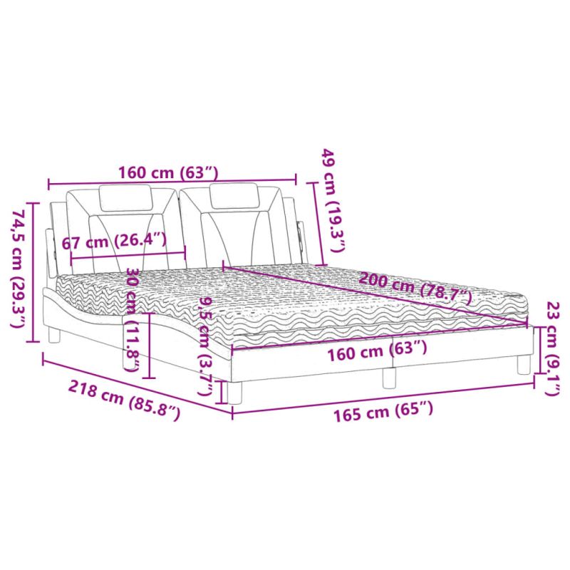 Осигурете си по-добър спокоен нощен сън с това легло с матрак! То представлява приветливо допълнение към всяка спалня. Издържлива изкуствена кожа: Първокласната изкуствена кожа е изключително издръжлив материал. Устойчива е на петна, което я прави лесна за почистване с влажна кърпа. Гладката повърхност също така придава луксозен вид и красотата на истинската кожа. Ламели от шперплат: Ламелите от шперплат осигуряват добро разпределение на теглото, като гарантират, че матракът остава на място при всяко завъртане на тялото ви по време на сън. Отлична опора: Възглавницата за табла е с пълнеж от пяна за изключително мек и оптимален комфорт, осигурявайки ви отлична опора за гърба, докато седите в леглото, за да четете или гледате телевизия. Матрак от дунапрен: Този 3-слоен матрак от плат е с пълнеж от 22D PU пяна за оптимален комфорт. Помага за облекчаване на умората и стимулира кръвообращението, като ви предлага пълна релаксация и добро качество на съня. В допълнение, матракът се предлага в твърдост H2 и H3, така че можете просто да завъртите матрака, за да изберете твърдостта, която ви подхожда най-добре. Вълнообразен страничен дизайн: Вълнообразният дизайн на рамката на леглото е стилен и изискан, добавя модерен и елегантен щрих към вашия декор, превръщайки го във фокусна точка на вашата спалня.