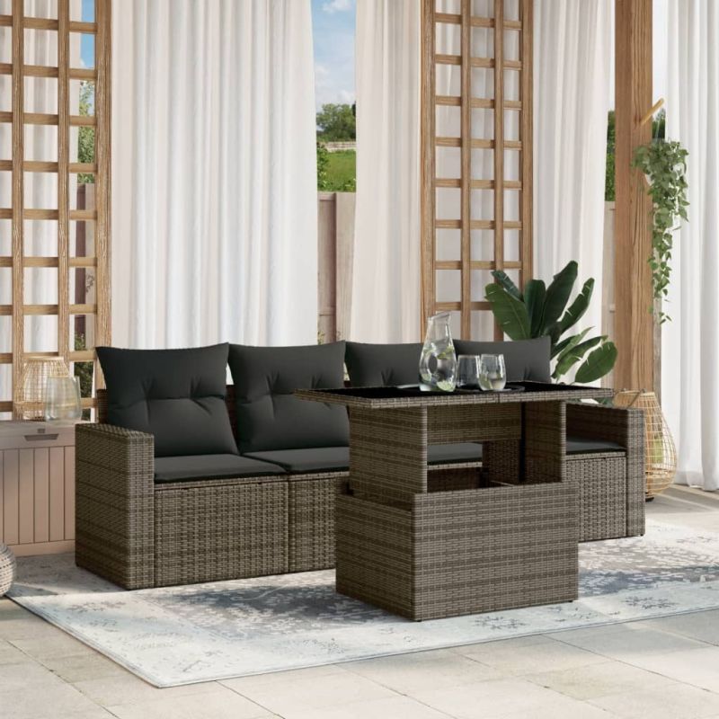 Този градински диван е идеалното допълнение към вашия заден двор, тераса или вътрешен двор, осигурявайки удобно и привлекателно пространство за разговори със семейството и приятелите или просто за почивка и забавление на открито. Издръжлив материал: PE ратан, известен също като полиратан, е здрав синтетичен материал с малко необходима поддръжка, който прилича на естествен ратан. Той е лек, лесен за почистване и често се използва за външни мебели поради своята издръжливост и устойчивост на атмосферни влияния.Регулируем плот: Плотът може да се повдигне, за да направи масата по-висока, което трансформира външната маса от маса за кафе в маса за хранене. Идеална е за гости или за хранене навън.Удобна седалка: Тази мебел за открито, снабдена с плътно подплатени възглавници, предлага удобство при сядане.Калъф, който може да се сваля и може да се пере: Тези възглавници за седалки имат подвижни калъфи за лесно пране и поддръжка.Модулен дизайн: Този комплект външни мебели има модулен дизайн, което го прави напълно гъвкав и лесен за преместване, така че можете да създадете персонализирана подредба на външни мебели. Добре е да се знае:За да сте сигурни, че вашите външни мебели ще останат красиви, ви препоръчваме да ги защитите с водоустойчиво покривало.