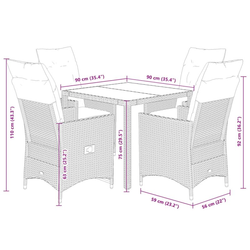 Този градински трапезен комплект е чудесен избор за вечеря на открито или просто за почивка в градината, задния двор или във вътрешния двор. Издръжлив материал: PE ратан, известен също като полиратан, е здрав синтетичен материал с малко необходима поддръжка, който прилича на естествен ратан. Той е лек, лесен за почистване и често се използва за външни мебели поради своята издръжливост и устойчивост на атмосферни влияния.Регулируема облегалка и поставка за крака: Този градински стол има дръжка. Можете да регулирате облегалката и поставката за крака във всяка позиция чрез издърпване на дръжката и бързо да ги върнете в първоначалните им позиции.Практичен плот: Плотът от закалено стъкло е идеален за поставяне или показване на различни необходими предмети. Освен това е лесен за почистване и поддръжка.Удобна седалка: Този комплект мебели за открито, снабдени с плътно подплатени възглавници, предлага удобство при сядане.Калъф, който може да се сваля и може да се пере: Тези възглавници за седалки имат подвижни калъфи за лесно пране и поддръжка. Възглавниците за облегалките имат калъф отзад за лесно закрепване към облегалките. Добре е да се знае:За да сте сигурни, че вашите външни мебели ще останат красиви, ви препоръчваме да ги защитите с водоустойчиво покривало.