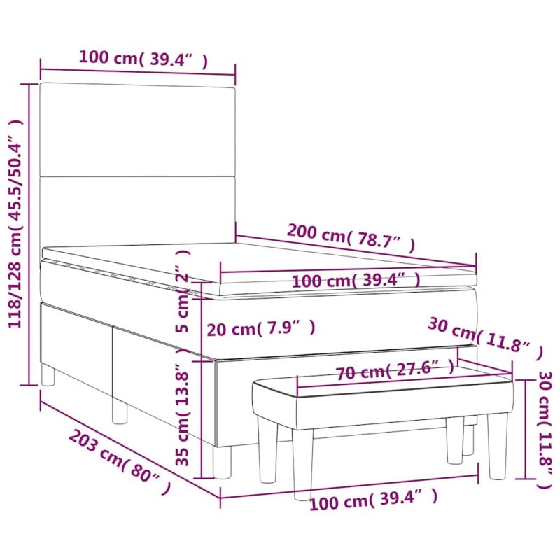 Използвайте това боксспринг легло, за да се насладите на спокоен сън! Предлага ви максимален релакс и приятен сън. Меко кадифе: Кадифето е мека и луксозна материя, която се отличава с гъста купчина равномерно отрязани влакна за гладка повърхност. Кадифената тъкан се отличава с меко усещане, което я прави приятна на допир.Практична табла за глава: Горната табла за легло се регулира на височина според вашите предпочитания. Горната част на леглото ви осигурява отлична опора за гърба, докато седите в леглото, за да четете или гледате телевизия.Покет пружинен матрак: Вградените индивидуални покет пружини са известни с много високото си качество, като същевременно осигуряват високо ниво на издръжливост и адаптивност. Те могат ефективно да абсорбират шума и ударите, причинени от мятане и въртене.Средно твърда поддръжка: Матракът за легло перфектно осигурява допълнителна стабилност и точното ниво на твърдост, без да се жертва комфорта. Така той е идеален за спящи по гръб или корем.Благоприятен за кожата топ матрак: Протекторът за матрак има издръжлива, както и щадяща кожата материя, което я прави мека и удобна.Многофункционална пейка: Тази пейка може да служи като допълнително място за сядане във вашия дом. Също така може да се използва като пейка в края на легло. Забележка:От хигиенни съображения матракът не може да бъде върнат, ако опаковката е отстранена или отворена.Всеки продукт се доставя с ръководство за сглобяване в кашона за лесно сглобяване.