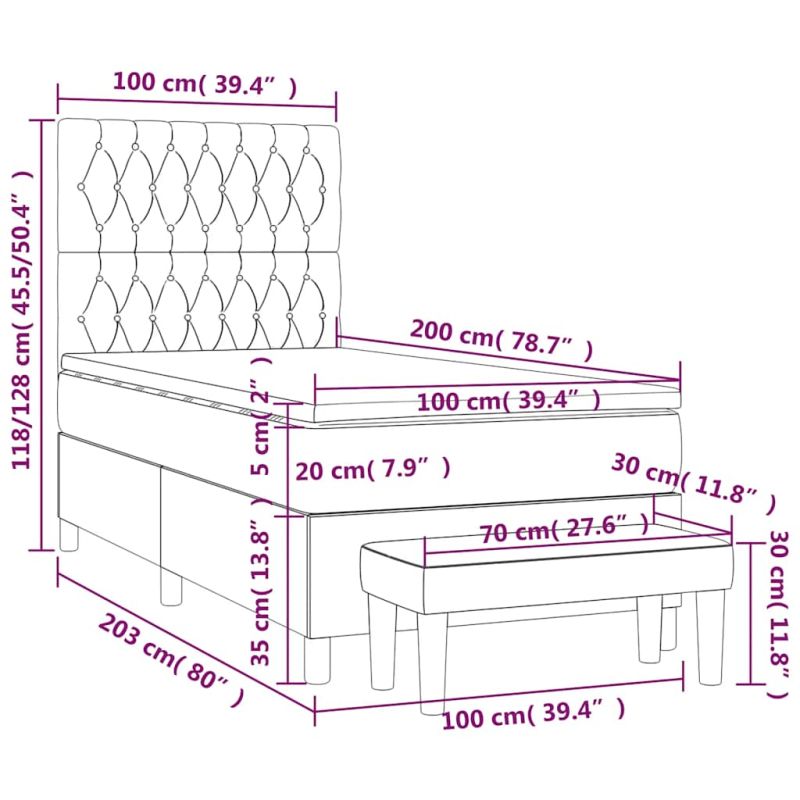 Използвайте това боксспринг легло, за да се насладите на спокоен сън! Предлага ви максимален релакс и приятен сън. Меко кадифе: Кадифето е мека и луксозна материя, която се отличава с гъста купчина равномерно отрязани влакна за гладка повърхност. Кадифената тъкан се отличава с меко усещане, което я прави приятна на допир.Практична табла за глава: Горната табла за легло се регулира на височина според вашите предпочитания. Горната част на леглото ви осигурява отлична опора за гърба, докато седите в леглото, за да четете или гледате телевизия.Покет пружинен матрак: Вградените индивидуални покет пружини са известни с много високото си качество, като същевременно осигуряват високо ниво на издръжливост и адаптивност. Те могат ефективно да абсорбират шума и ударите, причинени от мятане и въртене.Средно твърда поддръжка: Матракът за легло перфектно осигурява допълнителна стабилност и точното ниво на твърдост, без да се жертва комфорта. Така той е идеален за спящи по гръб или корем.Благоприятен за кожата топ матрак: Протекторът за матрак има издръжлива, както и щадяща кожата материя, което я прави мека и удобна.Многофункционална пейка: Тази пейка може да служи като допълнително място за сядане във вашия дом. Също така може да се използва като пейка в края на легло. Забележка:От хигиенни съображения матракът не може да бъде върнат, ако опаковката е отстранена или отворена.Всеки продукт се доставя с ръководство за сглобяване в кашона за лесно сглобяване.