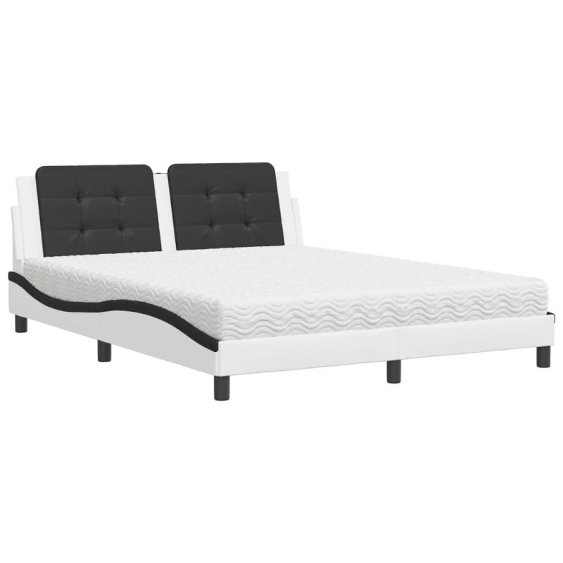 Легло с матрак Zadar, бяло и черно, 160x200 см, изкуствена кожа