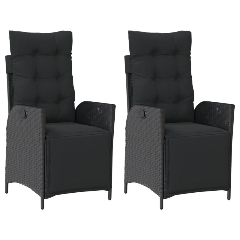Накланящи градински столове с подложка 2 бр, черен, полиратан