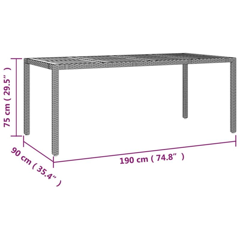 Този градински комплект за хранене е чудесен избор за хранене на открито или просто за релакс в градината, задния двор или на терасата. Издръжлив материал: PE ратанът, известен още като полиратан, е здрав, лесен за поддръжка синтетичен материал, който прилича на естествен ратан. Той е лек, лесен за почистване и често се използва за градински мебели поради своята издръжливост и устойчивост на атмосферни влияния.Регулируема облегалка: Тази градинска седалка има дръжка. Можете да регулирате облегалката във всяка позиция, като издърпате дръжката, и бързо да я върнете в първоначалното ѝ положение.Стабилен и лесен за почистване плот: Тази градинска маса има плот от акациево дърво, който е здрав, издръжлив и лесен за почистване с влажна кърпа.Удобно седене: Този комплект градински мебели, оборудван с дебело подплатени възглавници, предлага удобно седене.Свалящ се и перещ се калъф: Тези възглавници за седалки са с подвижни калъфи за лесно пране и поддръжка. Възглавниците за облегалки имат капак отзад за лесно закрепване към облегалките. Полезно е да знаете:За да сте сигурни, че вашите градински мебели ще останат красиви, препоръчваме да ги защитите с водоустойчив калъф.