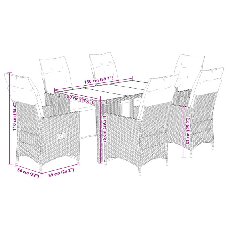 Градински бистро комплект с възглавници 7 части бежов полиратан