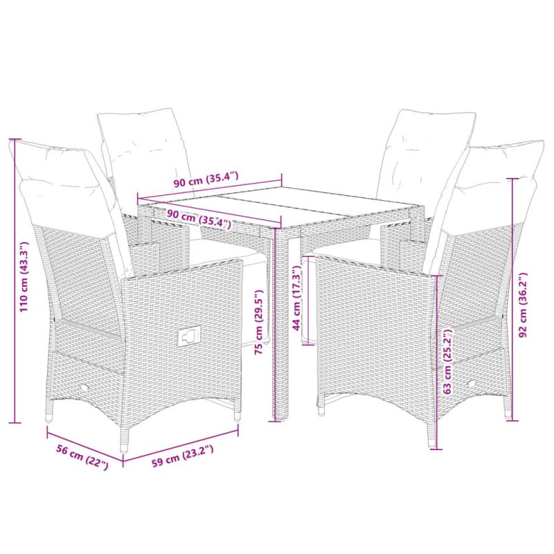 Насладете се на кафе или поговорете със семейството и приятелите си в градината, задния двор или на балкона с този удобен комплект за бистро! Издръжлив материал: PE ратан, известен също като полиратан, е здрав синтетичен материал с малко необходима поддръжка, който прилича на естествен ратан. Той е лек, лесен за почистване и често се използва за външни мебели поради своята издръжливост и устойчивост на атмосферни влияния.Регулируема облегалка и поставка за крака: Този градински стол има дръжка. Можете да регулирате облегалката и поставката за крака във всяка позиция чрез издърпване на дръжката и бързо да ги върнете в първоначалната им позиция.Удобна седалка: Тази мебел за открито, снабдена с плътно подплатени възглавници, предлага удобство при сядане.Калъф, който може да се сваля и може да се пере: Тези възглавници за седалки имат подвижни калъфи за лесно пране и поддръжка. Възглавниците за облегалките имат калъф отзад за лесно закрепване към облегалките.Стабилен и лесен за почистване плот: Тази градинска маса има плот от акациево дърво, който е здрав, издръжлив и лесен за почистване с влажна кърпа. Добре е да се знае:За да сте сигурни, че вашите външни мебели ще останат красиви, ви препоръчваме да ги защитите с водоустойчиво покривало.