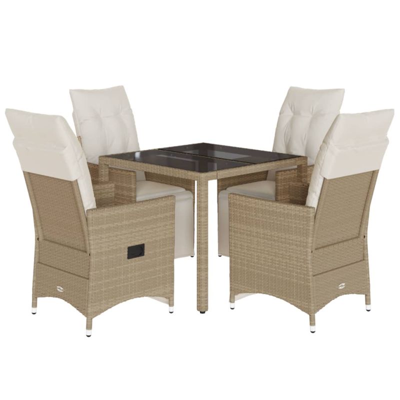 Градински бистро комплект с възглавници 5 части бежов полиратан