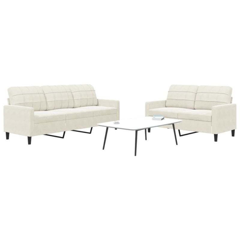 Комплект дивани от 2 части с възглавници, кремав, кадифе