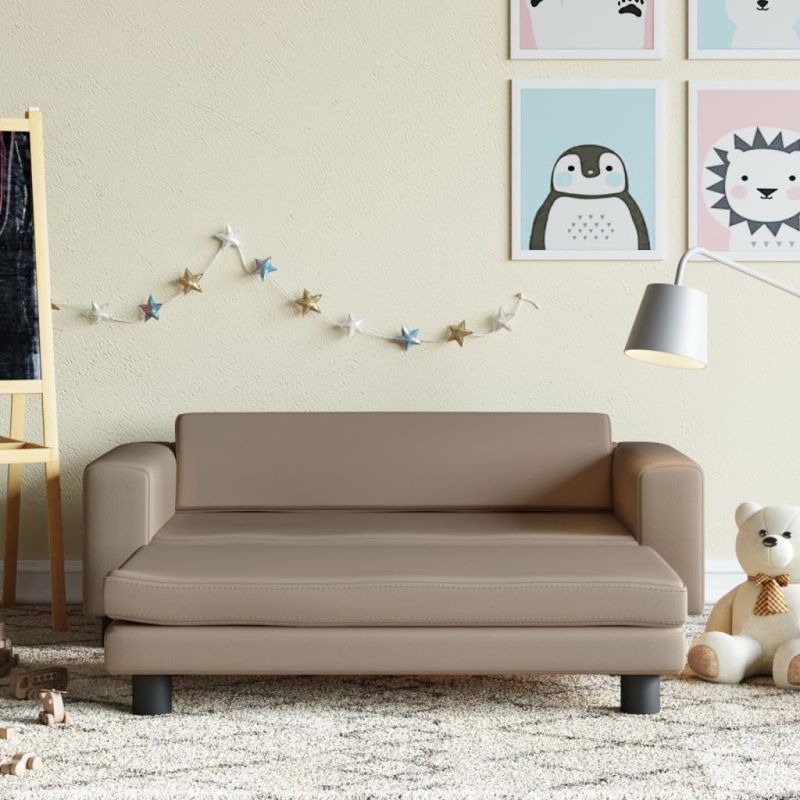 Детски диван с табуретка капучино 100x50x30 см изкуствена кожа