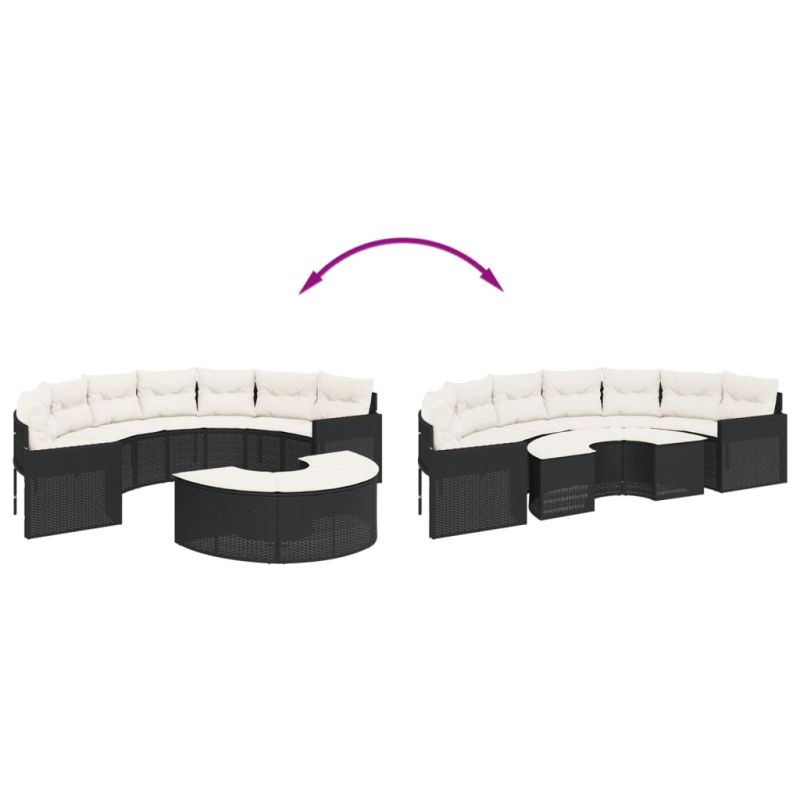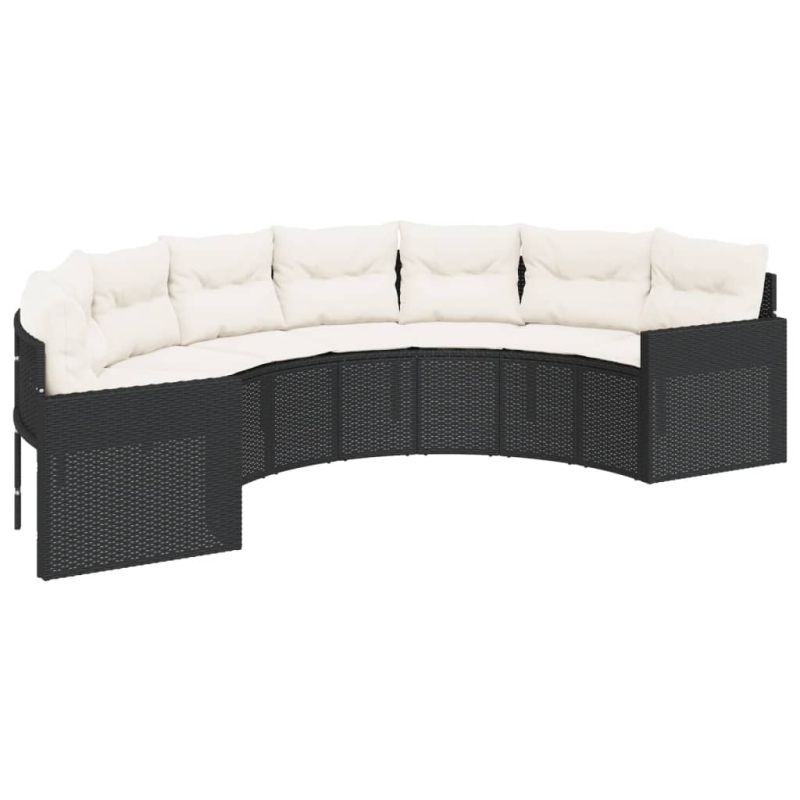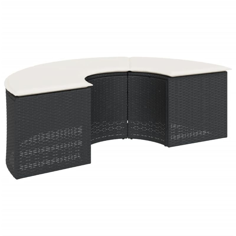 Градински диван от 2 части полукръгъл черен полиратан