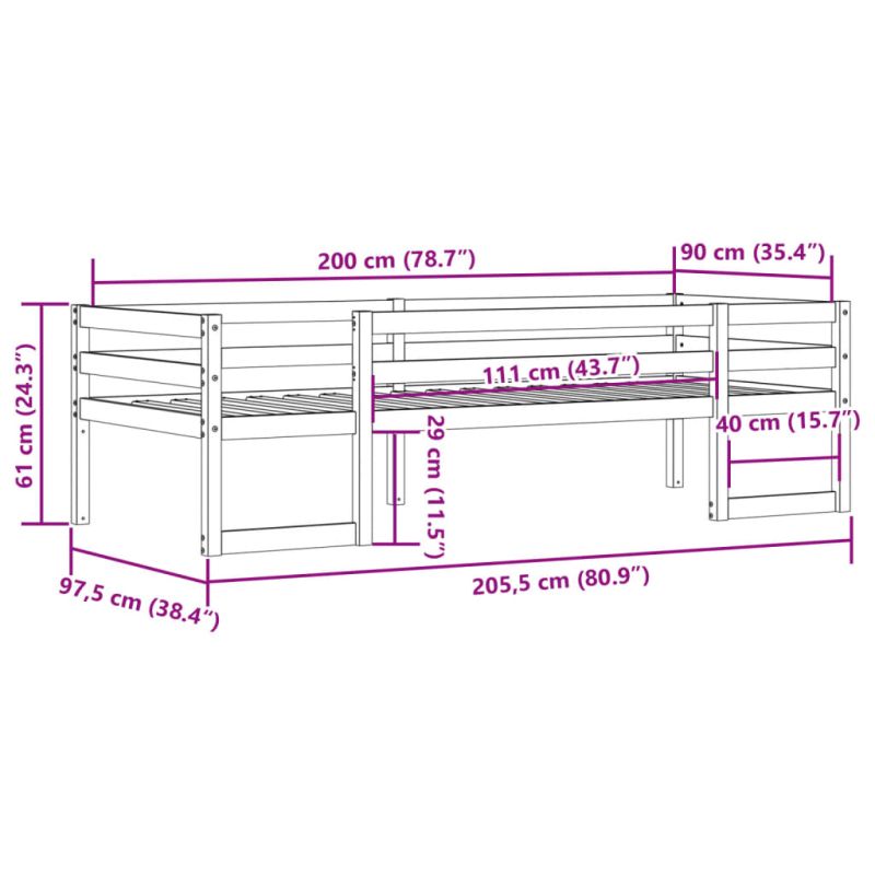 Мечтайте за мечтаи сънувайте с тази дървена рамка за детско легло. С елегантен и непреходен дизайн, тя е идеалният избор за вашите деца! Стабилна и дълготрайна рамка: Масивната борова дървесина е известна със своята здравина и издръжливост. Нейните прави зърна и отличителни възли допринасят за рустик чара ѝ.Здрави ламели: Ламелите от шперплат осигуряват добро разпределение на теглото, като гарантират, че матракът остава на място при всяко завъртане на тялото ви по време на сън.Предпазни парапети: Леглото за малки деца е снабдено с предпазни парапети от всичките 4 страни, така че детето ви да може да спи, без да се притеснявате, че ще падне.Пълно използване на пространството: Тази рамка за легло от масивно дърво за деца осигурява достатъчно пространство отдолу за съхранение или други дейности. Тази зона може да се използва за подреждане на кутии за съхранение и съхранение на големи играчки.Изключителна съвместимост: Детското легло с изчистени линии и елегантен дизайн е подходящо за всяка детска стая. Добре е да се знае:Доставката включва само рамки за легла. Матраците не са включени. Можете да проверите нашия магазин за подходящи матраци. Внимание:За да предотвратите преобръщане, този продукт трябва да се използва с предоставеното устройство за закрепване на стена.