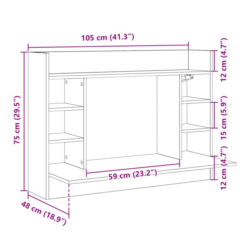 Бюро за стенен монтаж, опушен дъб, 105x48x75см, инженерно дърво