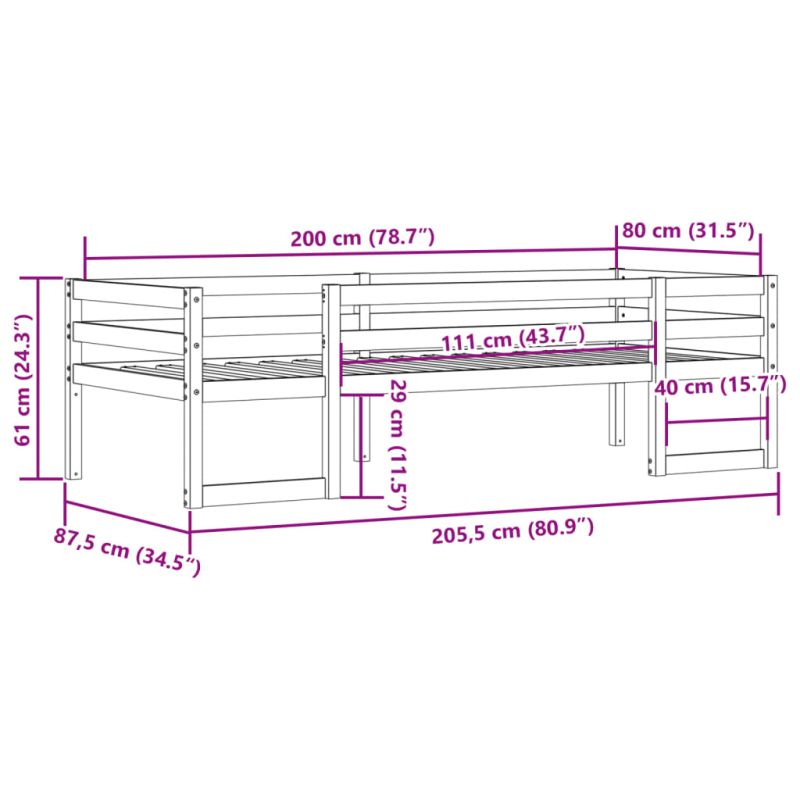 Детска рамка за легло восъчнокафява 80x200см борово дърво масив