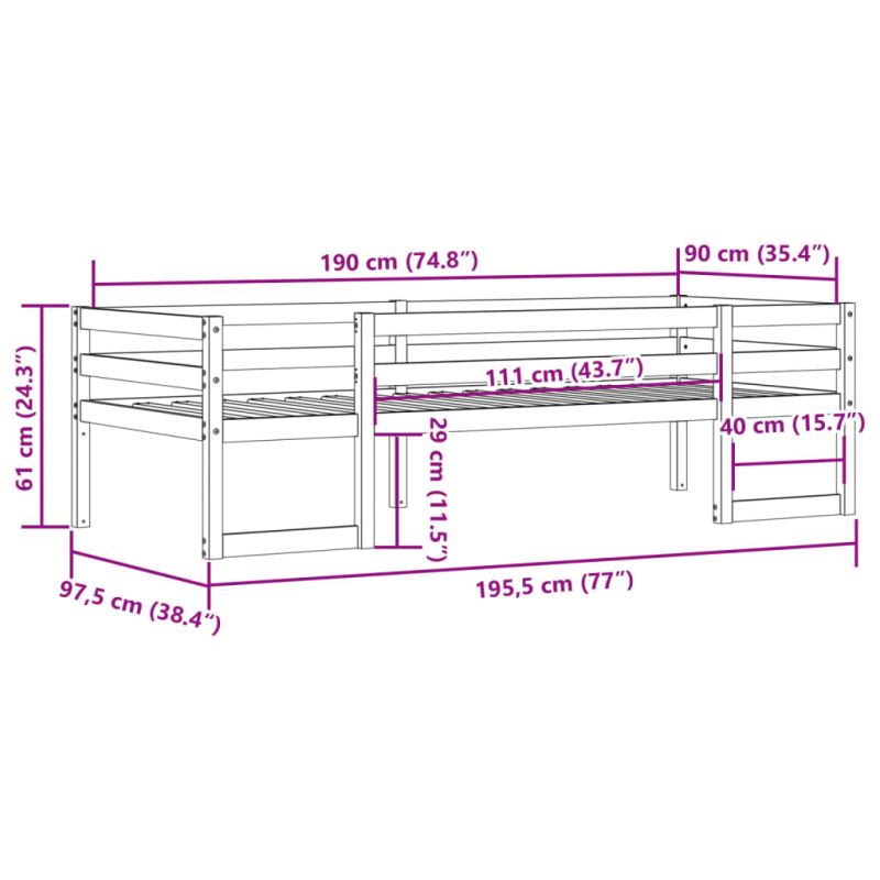 Мечтайте за мечтаи сънувайте с тази дървена рамка за детско легло. С елегантен и непреходен дизайн, тя е идеалният избор за вашите деца! Стабилна и дълготрайна рамка: Масивната борова дървесина е известна със своята здравина и издръжливост. Нейните прави зърна и отличителни възли допринасят за рустик чара ѝ.Здрави ламели: Ламелите от шперплат осигуряват добро разпределение на теглото, като гарантират, че матракът остава на място при всяко завъртане на тялото ви по време на сън.Предпазни парапети: Леглото за малки деца е снабдено с предпазни парапети от всичките 4 страни, така че детето ви да може да спи, без да се притеснявате, че ще падне.Пълно използване на пространството: Тази рамка за легло от масивно дърво за деца осигурява достатъчно пространство отдолу за съхранение или други дейности. Тази зона може да се използва за подреждане на кутии за съхранение и съхранение на големи играчки.Изключителна съвместимост: Детското легло с изчистени линии и елегантен дизайн е подходящо за всяка детска стая. Добре е да се знае:Доставката включва само рамки за легла. Матраците не са включени. Можете да проверите нашия магазин за подходящи матраци. Внимание:За да предотвратите преобръщане, този продукт трябва да се използва с предоставеното устройство за закрепване на стена.
