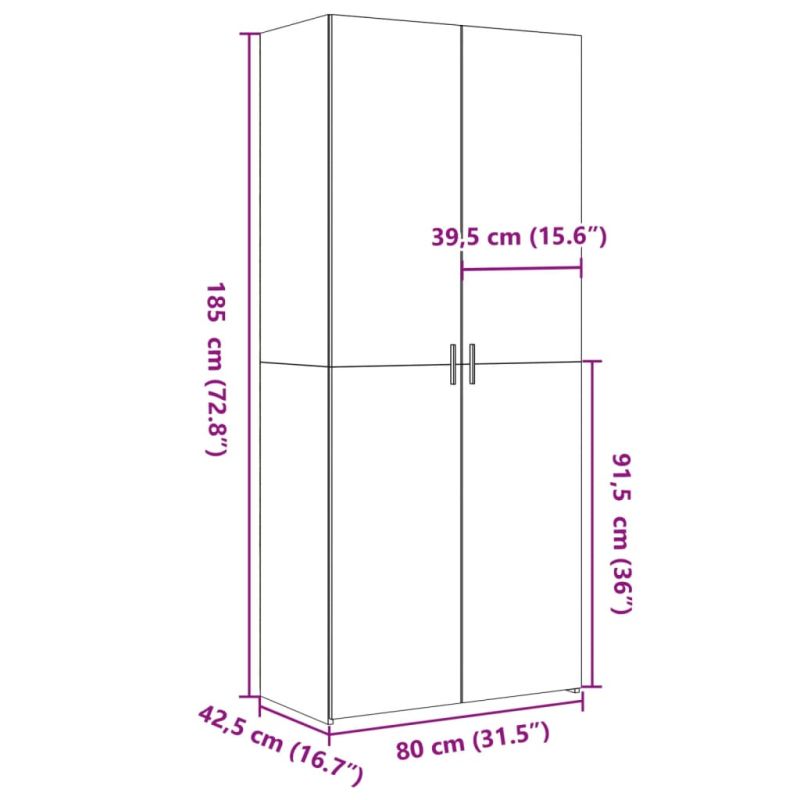 Висок шкаф, бял, 80x42,5x185 см, инженерно дърво