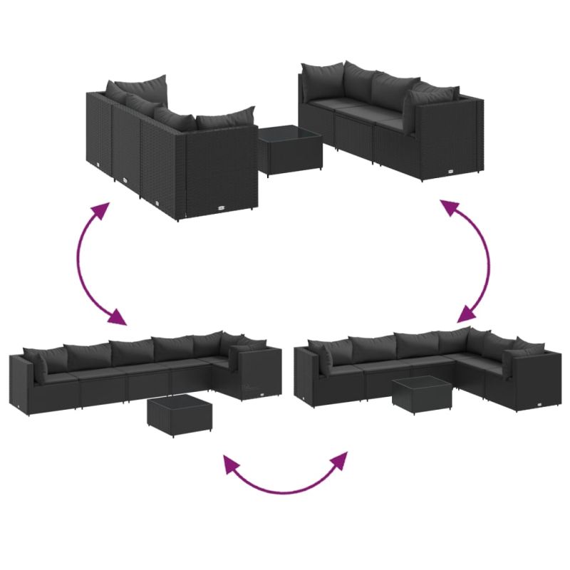 Градински лаундж комплект с възглавници 7 части черен полиратан