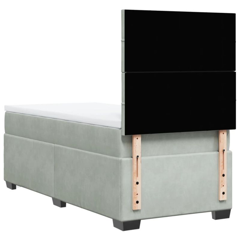 Боксспринг легло с матрак, светлосиво, 100x200 см, кадифе