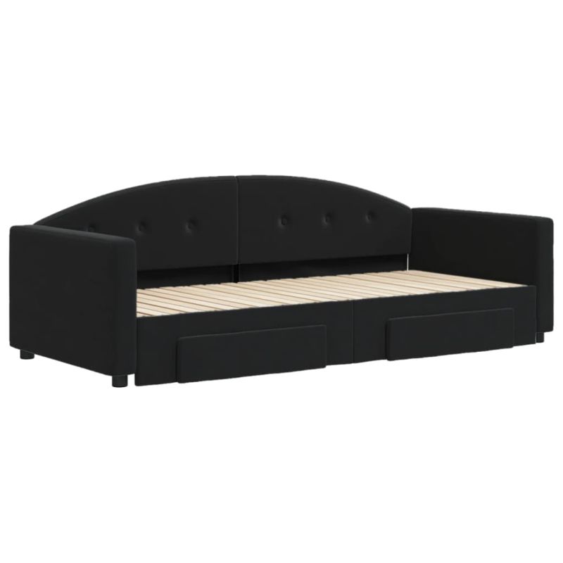 Канапе с изтеглящо легло и чекмеджета черно 90x200 см кадифе
