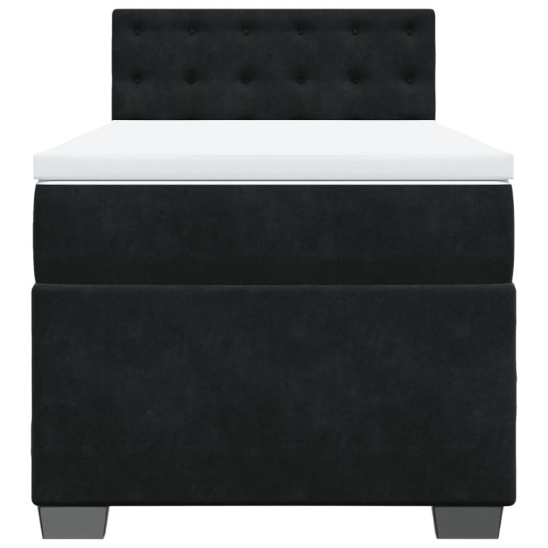 Боксспринг легло с матрак, черна, 90x190 см, кадифе