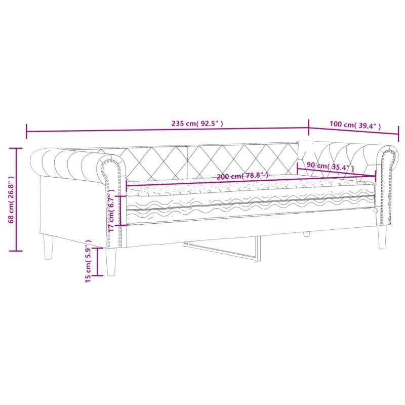 Канапе с матрак, бяло, 90x200 см, изкуствена кожа