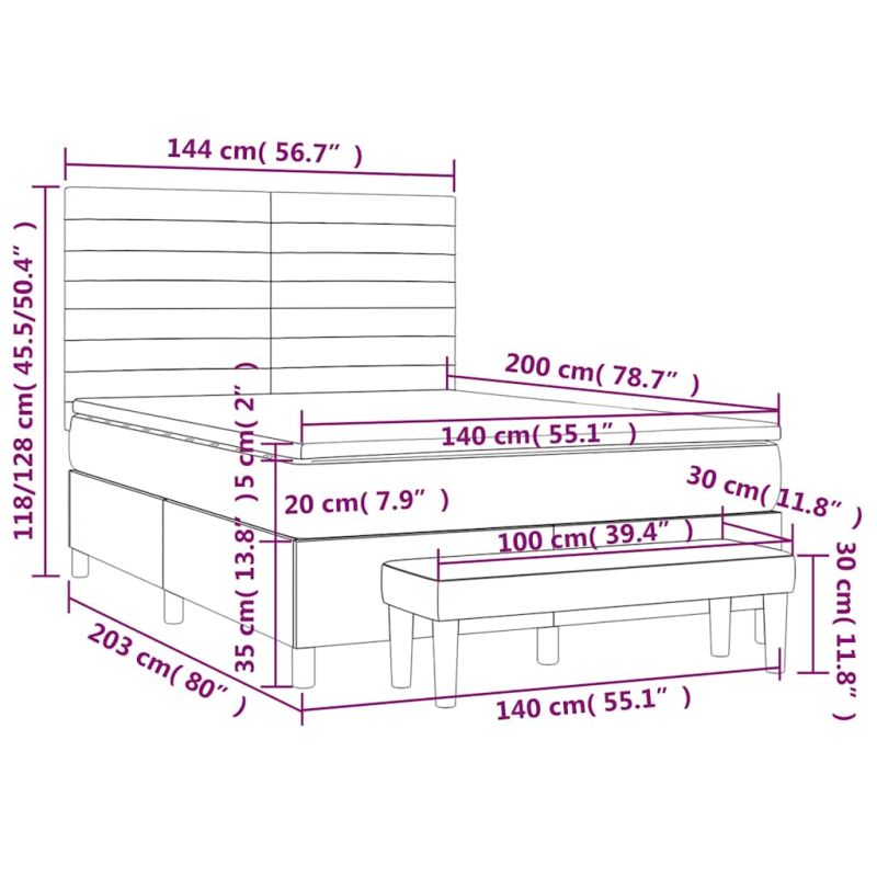Използвайте това боксспринг легло, за да се насладите на спокоен сън! Предлага ви максимален релакс и приятен сън. Меко кадифе: Кадифето е мека и луксозна материя, която се отличава с гъста купчина равномерно отрязани влакна за гладка повърхност. Кадифената тъкан се отличава с меко усещане, което я прави приятна на допир.Практична табла за глава: Горната табла за легло се регулира на височина според вашите предпочитания. Горната част на леглото ви осигурява отлична опора за гърба, докато седите в леглото, за да четете или гледате телевизия.Покет пружинен матрак: Вградените индивидуални покет пружини са известни с много високото си качество, като същевременно осигуряват високо ниво на издръжливост и адаптивност. Те могат ефективно да абсорбират шума и ударите, причинени от мятане и въртене.Средно твърда поддръжка: Матракът за легло перфектно осигурява допълнителна стабилност и точното ниво на твърдост, без да се жертва комфорта. Така той е идеален за спящи по гръб или корем.Благоприятен за кожата топ матрак: Протекторът за матрак има издръжлива, както и щадяща кожата материя, което я прави мека и удобна.Многофункционална пейка: Тази пейка може да служи като допълнително място за сядане във вашия дом. Също така може да се използва като пейка в края на легло. Забележка:От хигиенни съображения матракът не може да бъде върнат, ако опаковката е отстранена или отворена.Всеки продукт се доставя с ръководство за сглобяване в кашона за лесно сглобяване.
