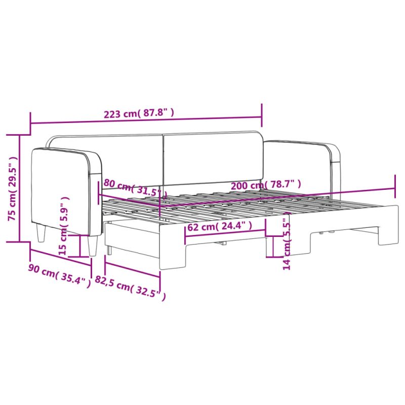 Това канапе 2-в-1 с изтеглящо разтегателно легло, което служи едновременно като диван и легло, е практично и атрактивно допълнение към вашата всекидневна или спалня. Функционална мебел: Канапето функционира като диван през деня и лесно се превръща в двойно легло през нощта чрез издърпване на механизма за изтеглящо разтегателно легло, осигурявайки удобно решение за настаняване на гости и увеличаване на пространството.Издръжлива материя: Леглото за гости е изработено от плат. Тъканта се отличава със семпъл и изчистен вид, като същевременно остава дишаща и дълготрайна.Здрава конструкция: Дървената и метална рамка на спалното легло осигурява здравина и стабилност. Добре е да се знае:Матраците не са включени в това легло. Ние предлагаме разнообразна селекция от матраци. Можете да проверите нашия магазин за подходящи матраци.
