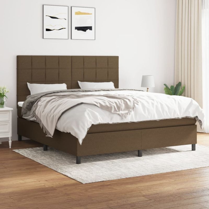 Боксспринг легло с матрак, тъмнокафяво, 160x200 см, плат