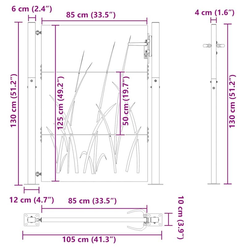 Градинска порта 100x125 см, дизайн с кортенова стомана и трева
