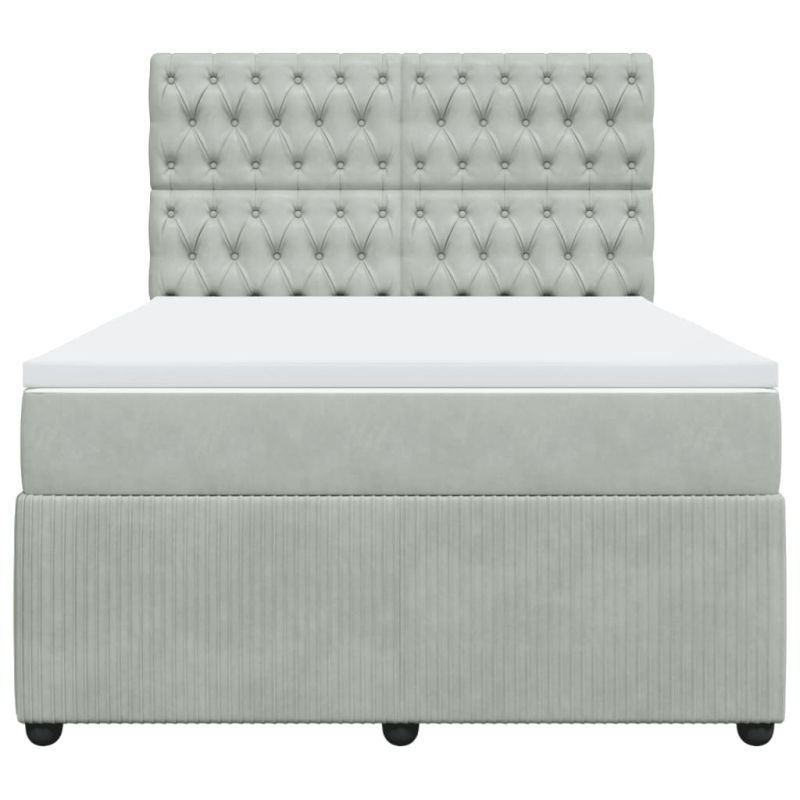 Боксспринг легло с матрак, светлосиво, 140x200 см, кадифе