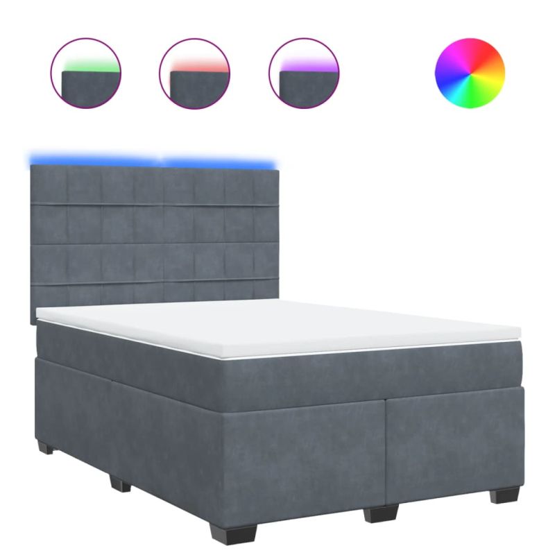 Боксспринг легло с матрак, тъмносиво, 160x200 см, кадифе