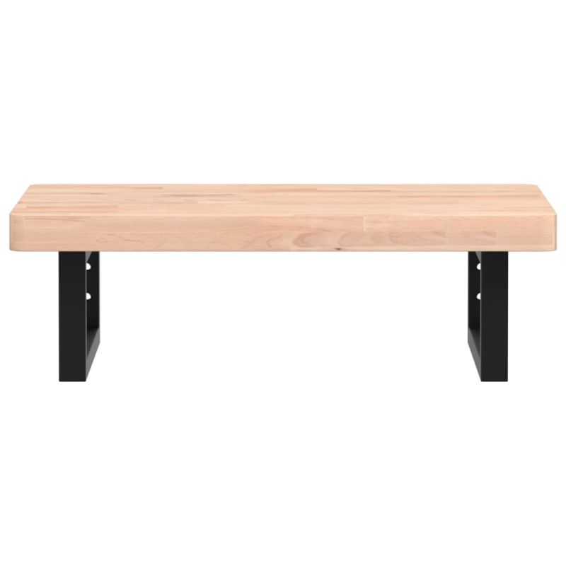 Стенният рафт за мивка се прикрепя сигурно към стената, осигурявайки елегантно и спестяващо място решение за вашата баня. Здрав и дълготраен: Този рафт за мивка е комбиниран със стоманена конструкция и плот от масивна букова дървесина, което го прави здрав, стабилен и дълготраен. Спестяване на място: Плаващият рафт за мивка има достатъчно място за съхранение на кремове и дребни предмети. Благодарение на правоъгълната форма можете да закачите кърпи или други неща на опората, за да спестите място. Лесен за използване: Плотът се доставя без дупки, за да позволи на мивката да се монтира отляво, отдясно или в центъра, в зависимост от изискванията на вашето помещение. Благодарение на предварително пробитите отвори в държача, той може лесно да се сглоби с плота и да се монтира на стената. Широки приложения: Благодарение на модерния си дизайн, осигурява допълнително пространство за различни видове бани. Добре е да се знае:Винтовете не са включени, можете да закупите винтовете отделно въз основа на информацията, предоставена по-долу. Прикрепване към стена: 2 бр дюбели M8 на скоба Дървен плот: 2 бр M5x18 винта (T=2) или 2 бр M5x20 винта (T=2,5/4 см) на скоба