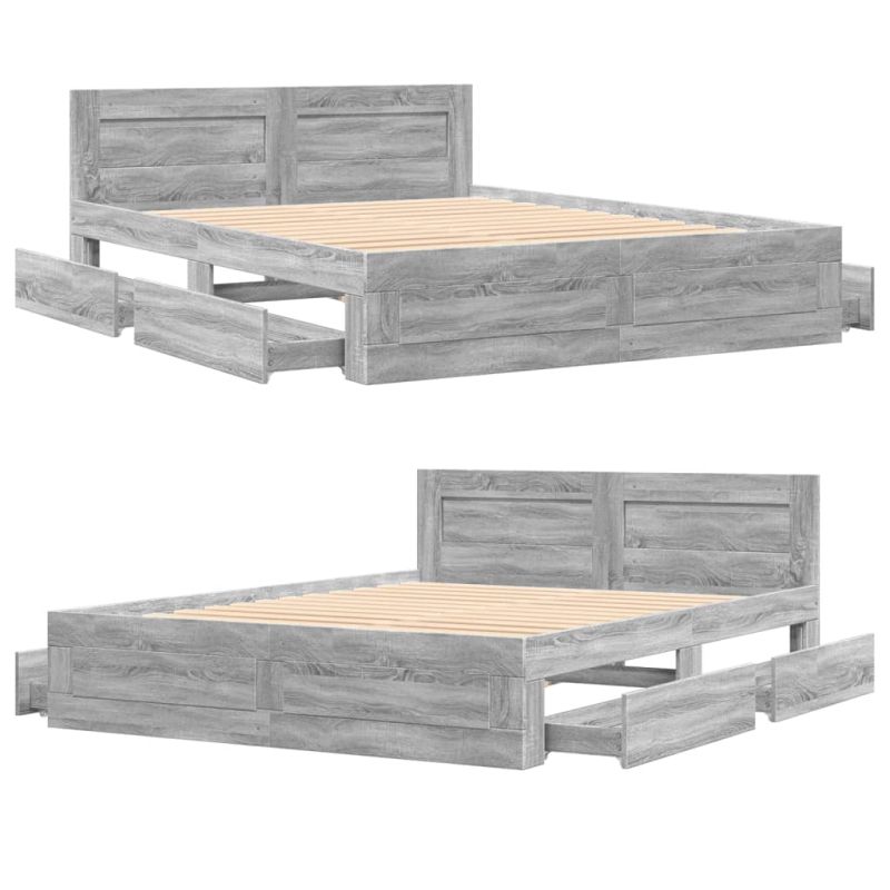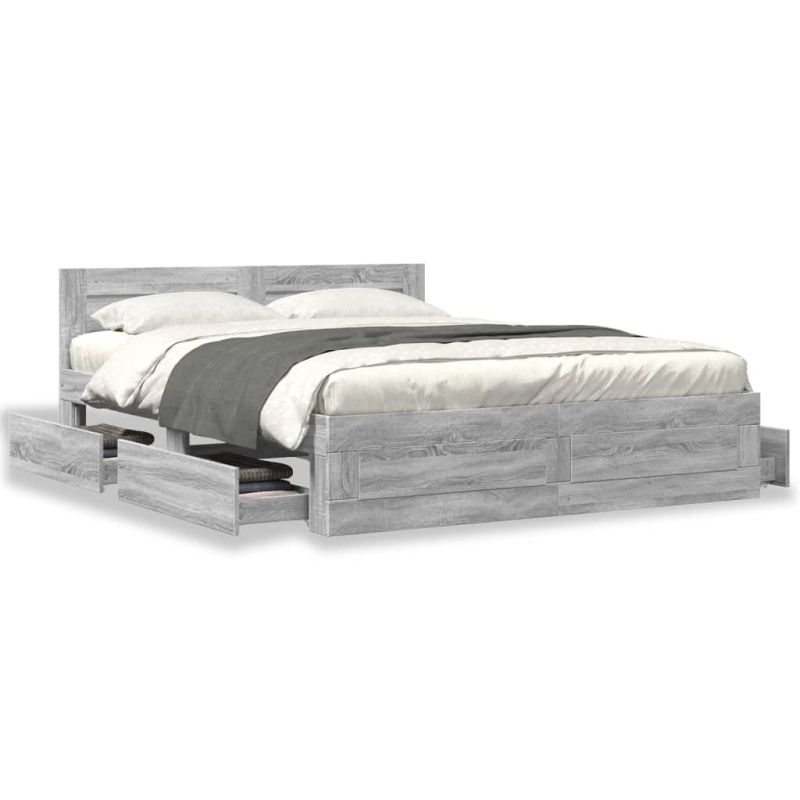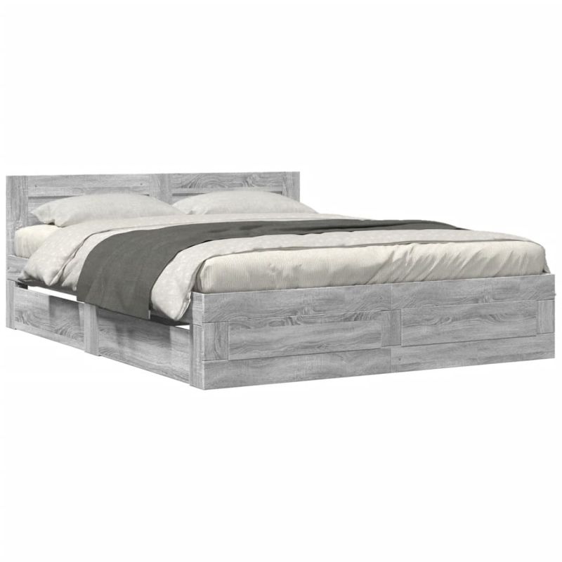 Рамка за легло с табла, сив сонома, 160x200 см, инженерно дърво