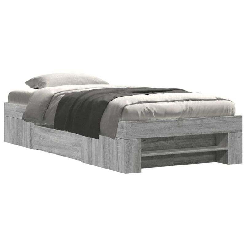 Рамка за легло, сив сонома, 75x190 см, инженерно дърво