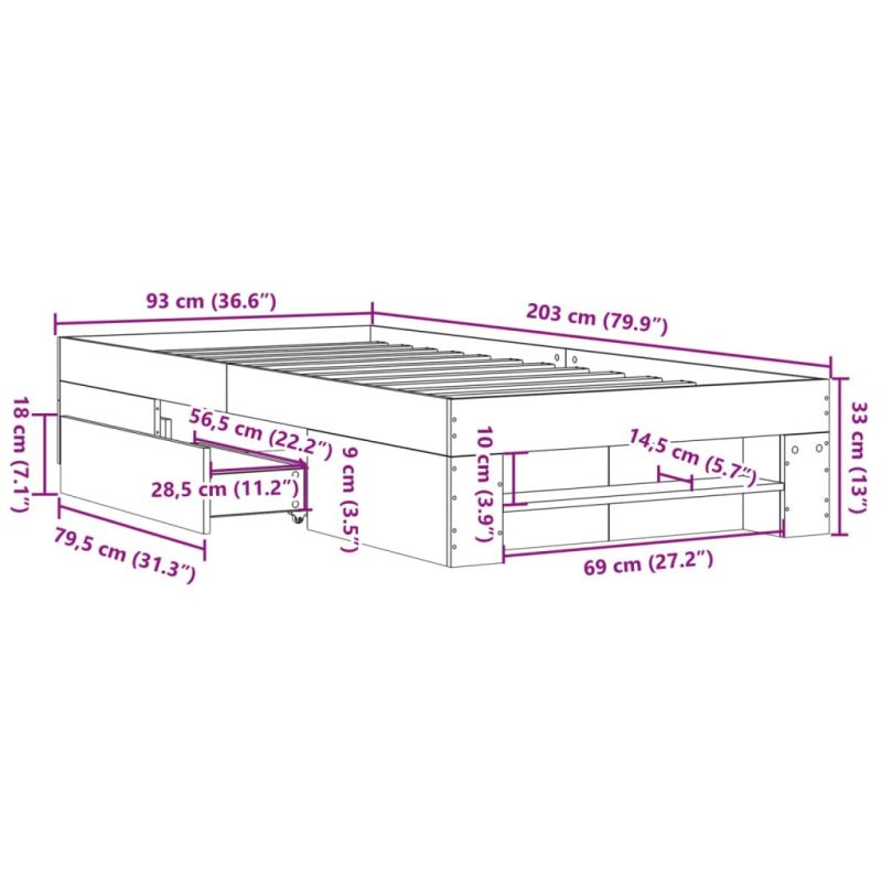 Осигурете си по-добър спокоен нощен сън с тази рамка за легло! Тя представлява приветливо допълнение към всяка спалня. Устойчив материал: Рамката на леглото е изработена от инженерна дървесина. Инженерната дървесина е с изключително качество с гладка повърхност и също така се отличава със здравина, стабилност и устойчивост на влага.Решетъчна основа за оптимална опора: Рамката на леглото е оборудвана с решетъчна основа за опора и дишане на вашия матрак.Функция за съхранение: Тази рамка за легло предлага чекмеджета и отворени отделения за поддържане на добре организирани вашите списания, книги, играчки и други малки предмети. Добре е да се знае:Към това легло не е включен матрак. Ние предлагаме разнообразна селекция от матраци. Можете да проверите нашия магазин за подходящ матрак.