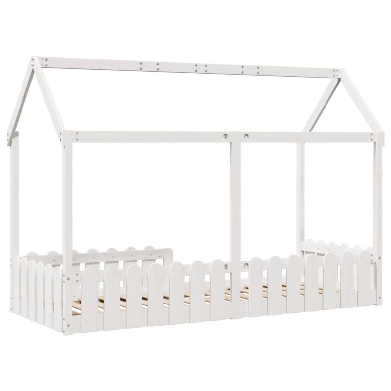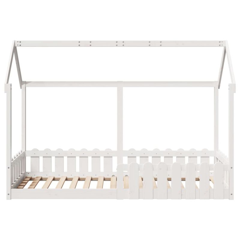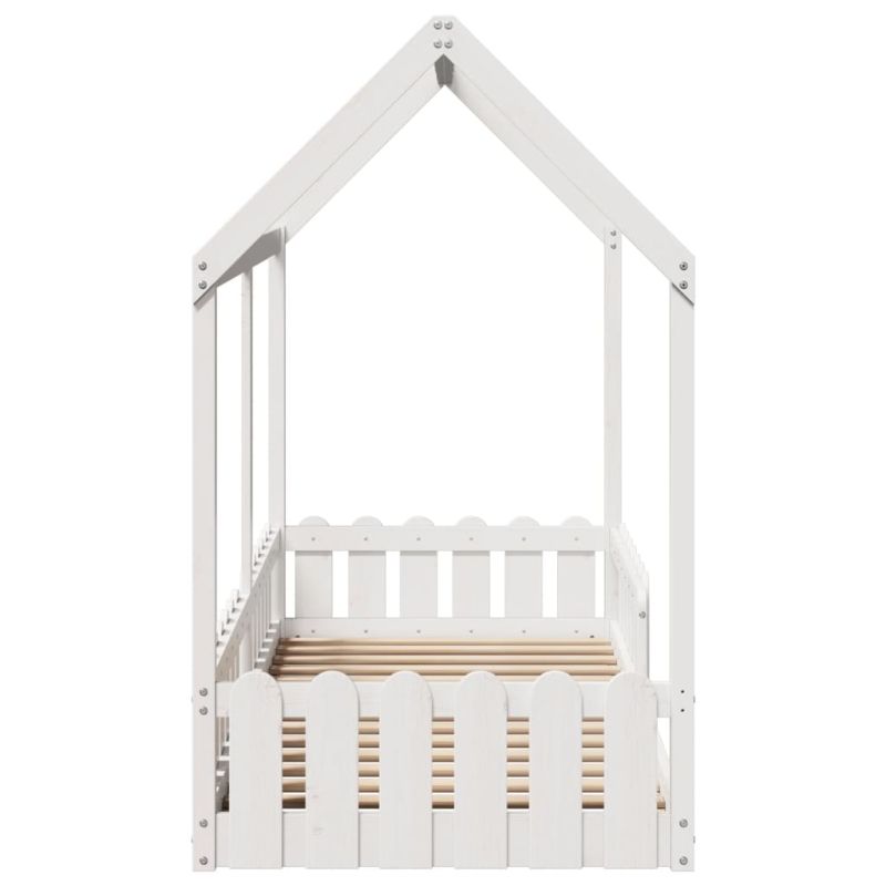 Рамка за детско легло тип къща, бял, 80x200 см, бор масив