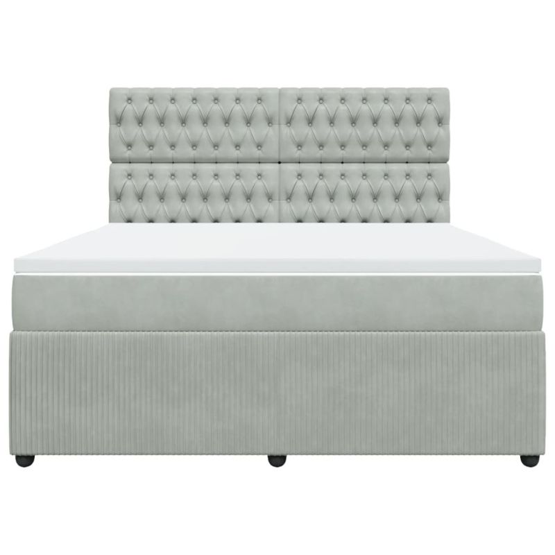 Боксспринг легло с матрак, светлосиво, 180x200 см, кадифе