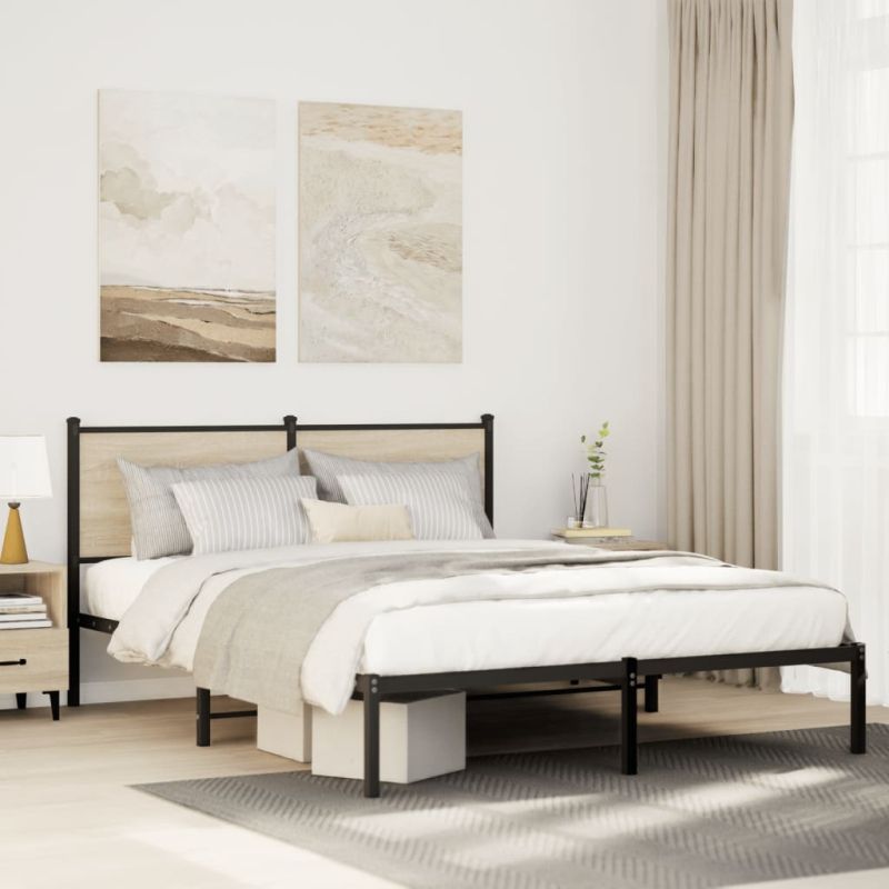 Метална рамка за легло, без матрак, сонома дъб, 140x200 см