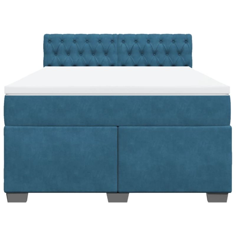 Боксспринг легло с матрак, синьо, 160x200 см, кадифе