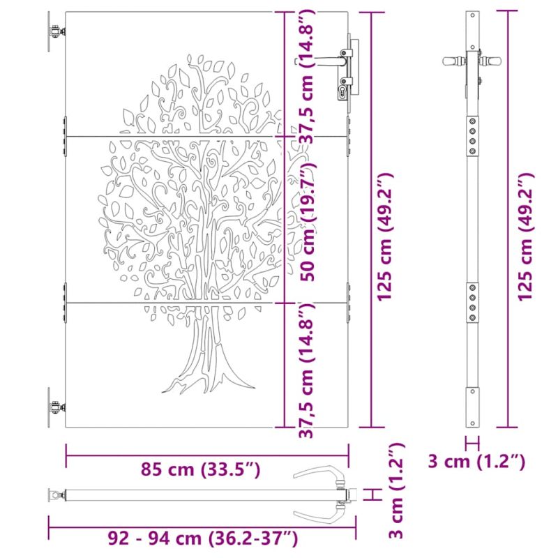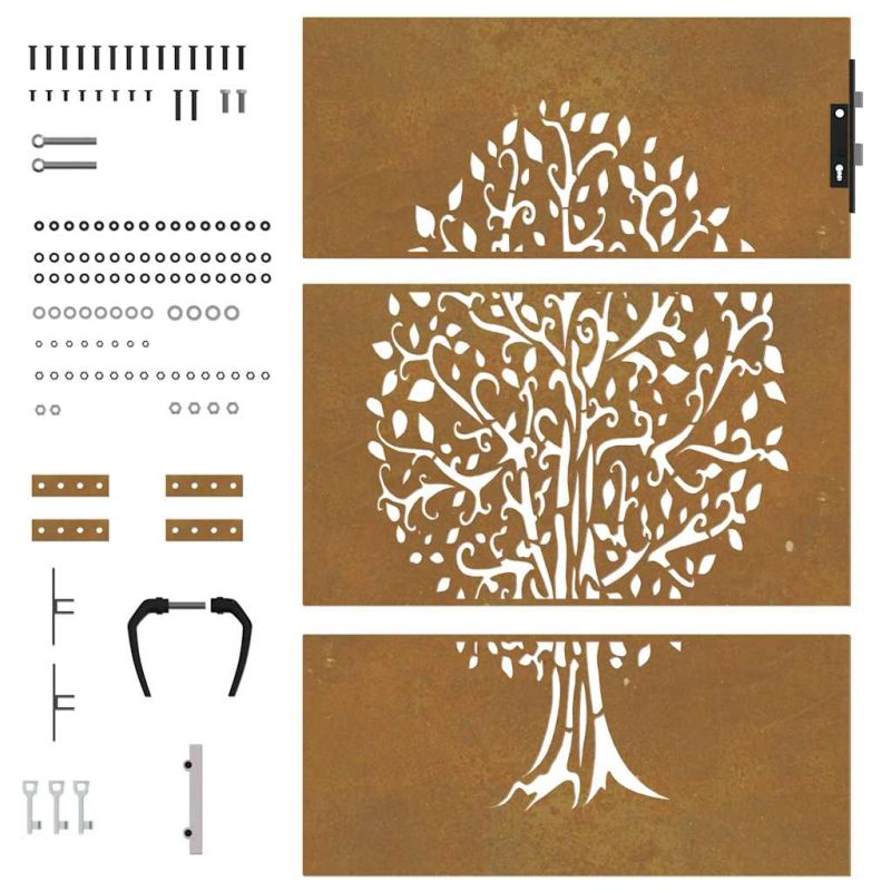 Тази градинска порта, отличаваща се с перфектна комбинация от здравина и елегантност, е идеална врата за оградата около вашата градина или вътрешен двор. Издръжлив материал: Металната врата е изработена от кортенова стомана. Кортенова стомана, известна също като патинираща стомана. Тя е антикорозионна по своята същност. Развива ръждив защитен слой срещу корозия при първото излагане на атмосферни условия. Следователно не е необходимо да я боядисвате. Това може да ви помогне да спестите разходи за поддръжка и ремонт. Отличителният кафяв цвят на кортеновата стомана със сигурност ще привлече вниманието. И накрая, патиниращата стомана е изключително издръжлива и ще издържи изпитанието на времето. Лазерно изрязан дизайн: Страничната порта има красив лазерно изрязан дизайн, който добавя специален чар към вашия дом.Заключваща се система: Стоманената порта е оборудвана със заключваща се система за допълнителна сигурност. Добре е да се знае:Този продукт трябва да бъде сглобен.Този продукт все още не е ръждясал и когато го получите ще има нормален метален цвят, но ръждата ще се появи с течение на времето. Можете да ускорите процеса на ръждясване, като го напръскате със сапунена и солена вода. За да запазите дрехите си от петна, избягвайте контакт с образуващия се слой ръжда.