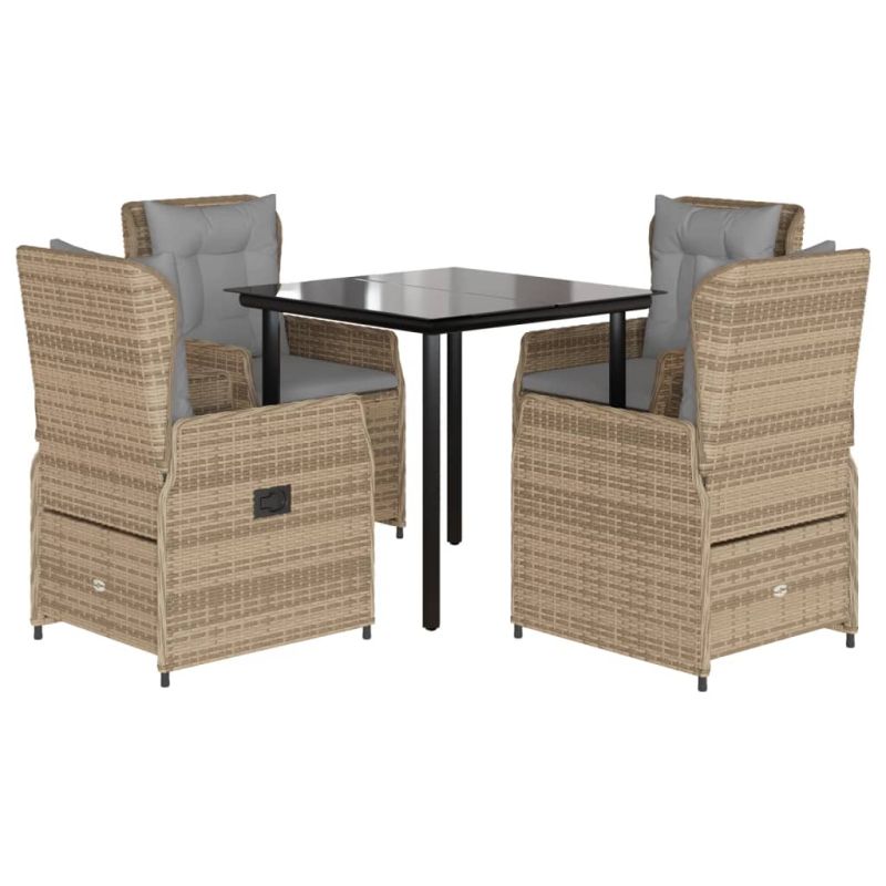 Градински комплект с възглавници, 5 части, бежов полиратан