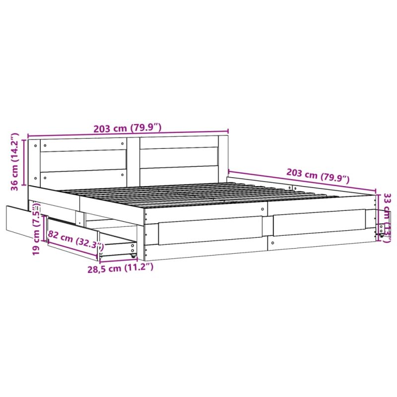 Осигурете си по-добър спокоен нощен сън с тази рамка за легло! Тя представлява приветливо допълнение към всяка спалня. Устойчив материал: Рамката на леглото е изработена от инженерна дървесина. Инженерната дървесина е с изключително качество с гладка повърхност и също така се отличава със здравина, стабилност и устойчивост на влага.Решетъчна основа за оптимална опора: Рамката на леглото е оборудвана с решетъчна основа за опора и дишане на вашия матрак.Функция за съхранение: Тази рамка за легло предлага чекмеджета за поддържане на добре организирани вашите списания, книги, играчки и други малки предмети.Отлична опора: Таблата на рамката за легло ви осигурява отлична опора за гърба, когато седите в леглото, за да четете или гледате телевизия. Добре е да се знае:Към това легло не е включен матрак. Ние предлагаме разнообразна селекция от матраци. Можете да проверите нашия магазин за подходящ матрак.