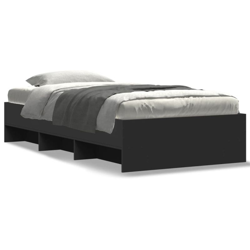Рамка за легло, черна, 90x200 см, масивно дърво