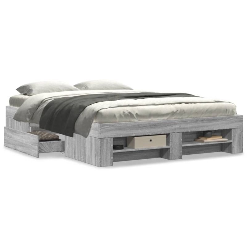 Рамка за легло, сив сонома, 140x200 см, инженерно дърво